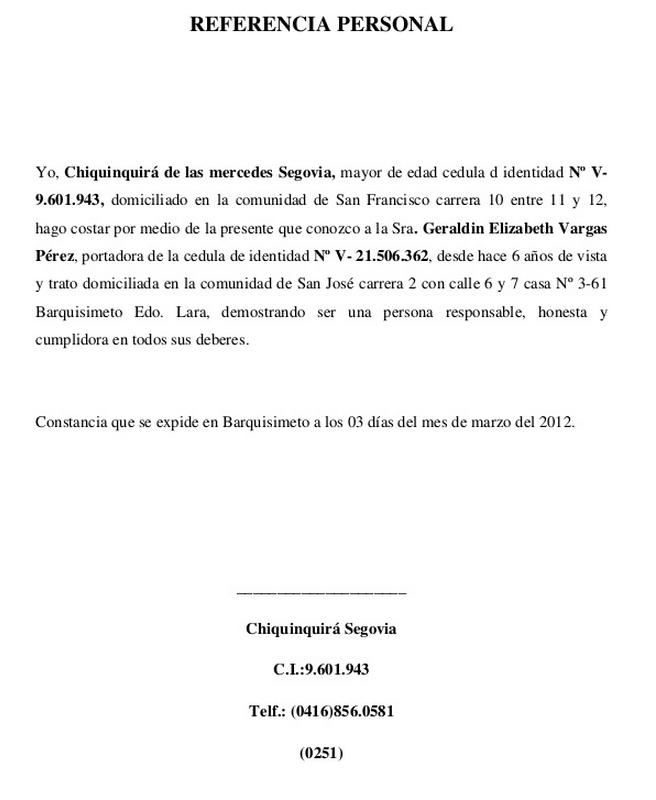 Carta de recomendación personal, laboral y académica (2021) una carta de recomendación, carta de referencia o simplemente una referencia personal es un certificado que acredita a una persona como responsable para todo tipo de trabajo o institución académica a la que se desee postular carta recomendación laboral personal. Estas pueden ser redactadas ya sea por una persona natural o una empresa con la finalidad de dar respaldo a las aptitudes y actitudes de una persona que se encuentra buscando una plaza de estudio o intenta.